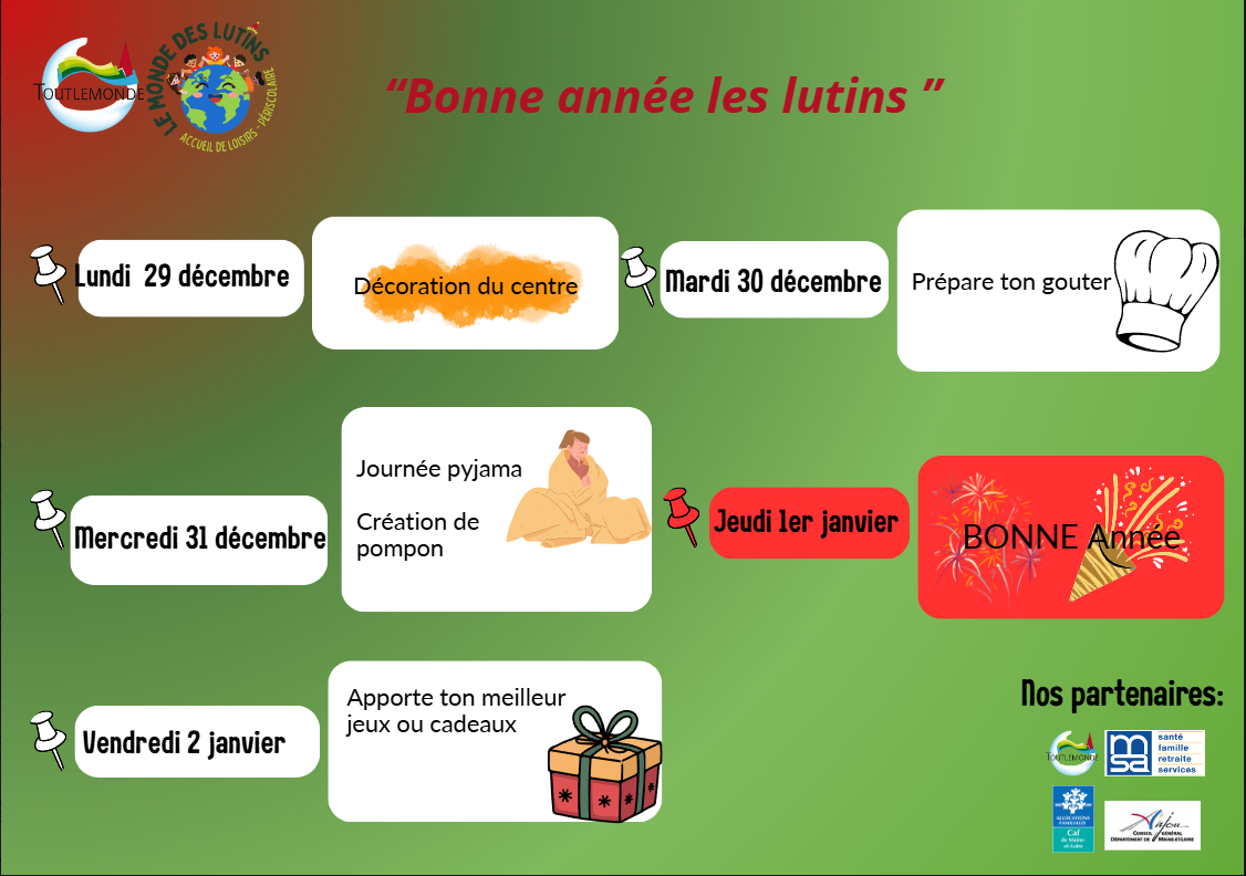 Veuillez trouver ci-joint, le programme des activités des vacances de noël.